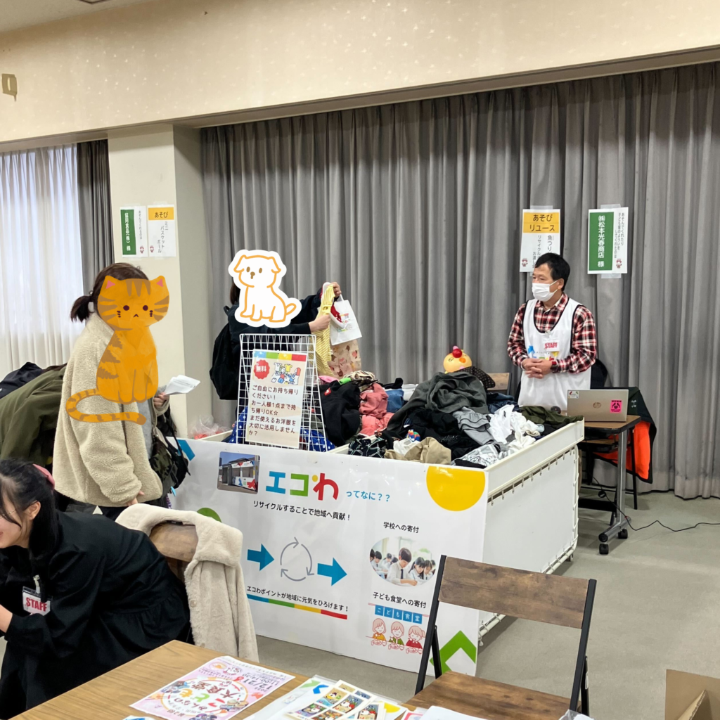洋服コーナーでは「ちょうど欲しかった」「助かります」といった声が聞かれ、さかな釣りでは、繰り返し挑戦しながら楽しむ子どもたちの姿が印象的でした。